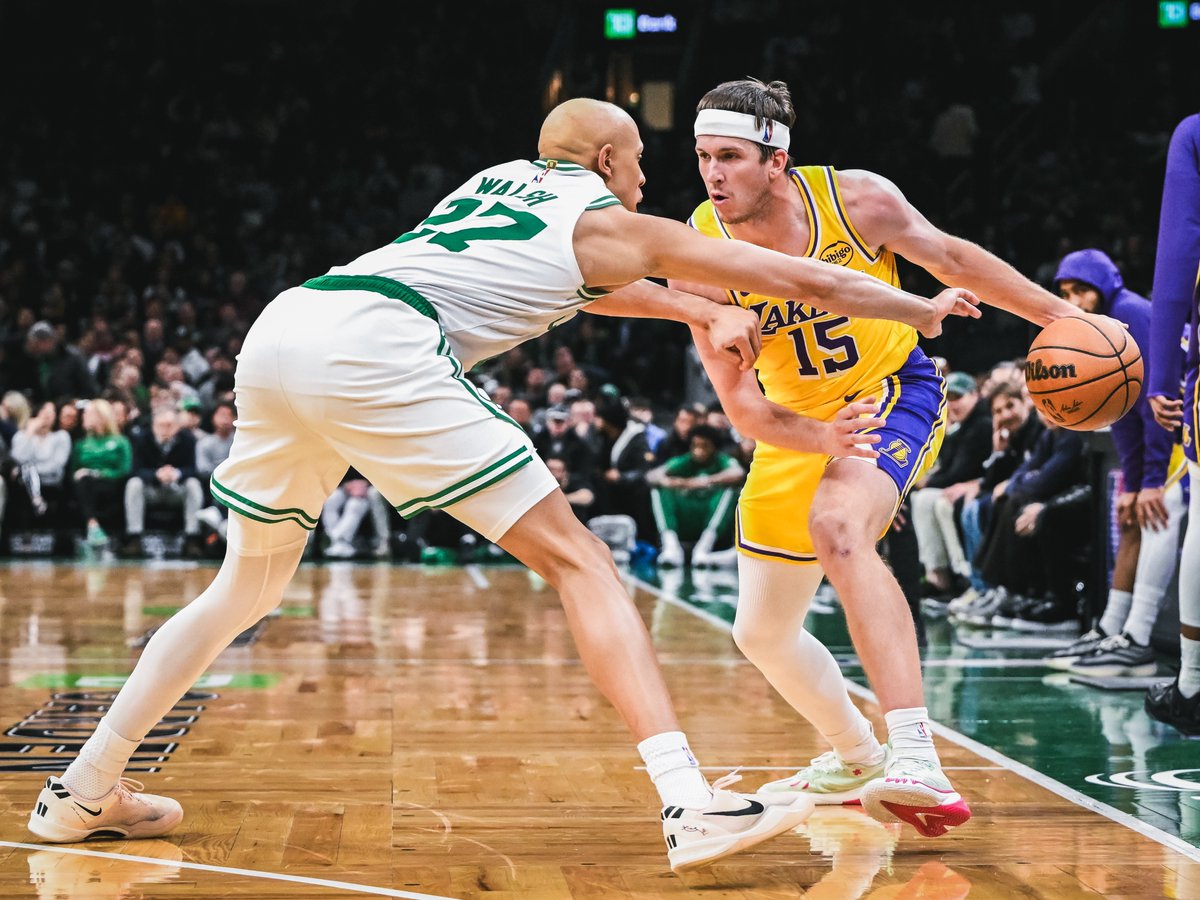 今日湖人球員奧斯汀-里夫斯在凱爾特人球員喬丹-沃爾什的防守下3投0中,只得到了3分。